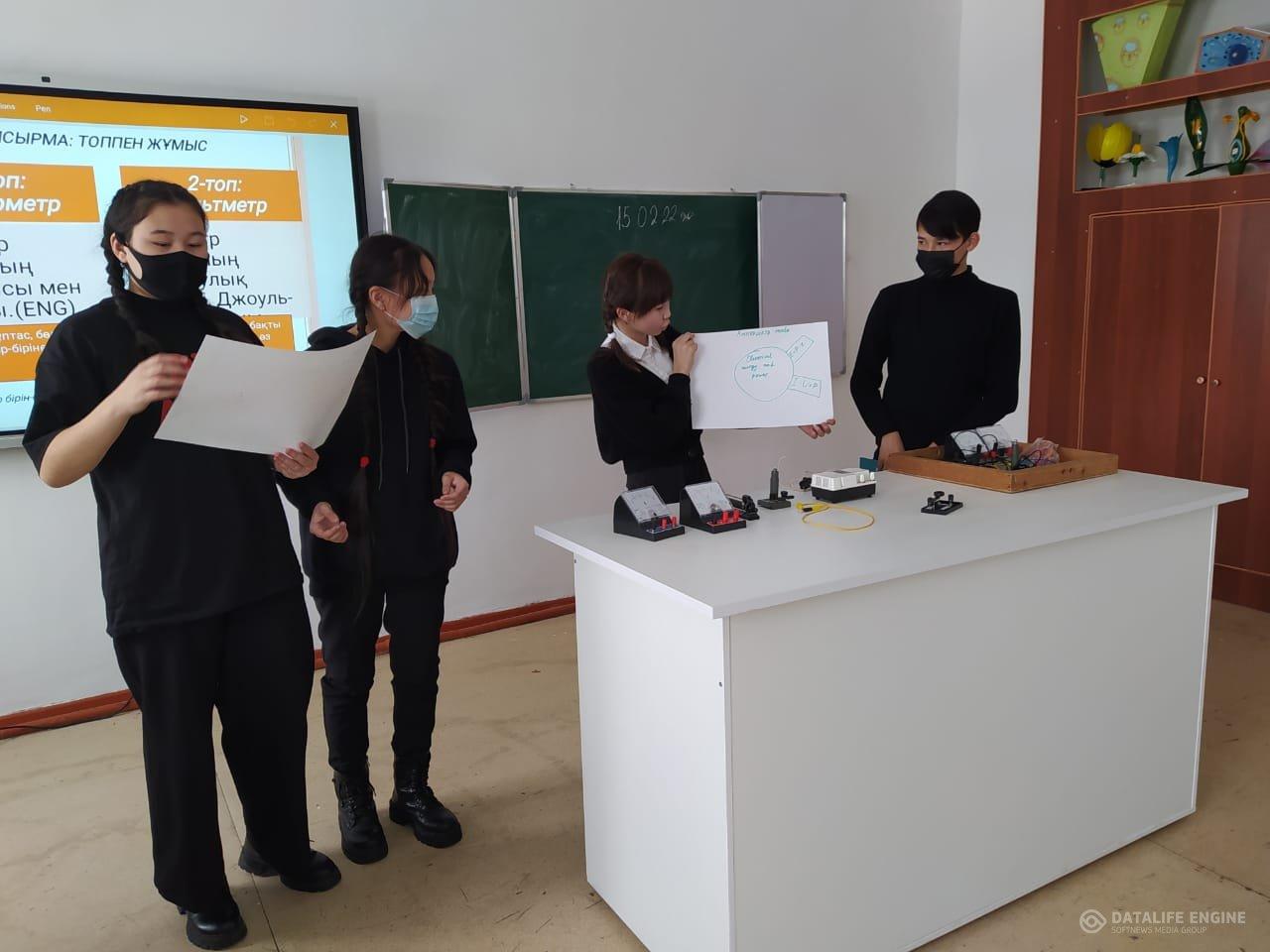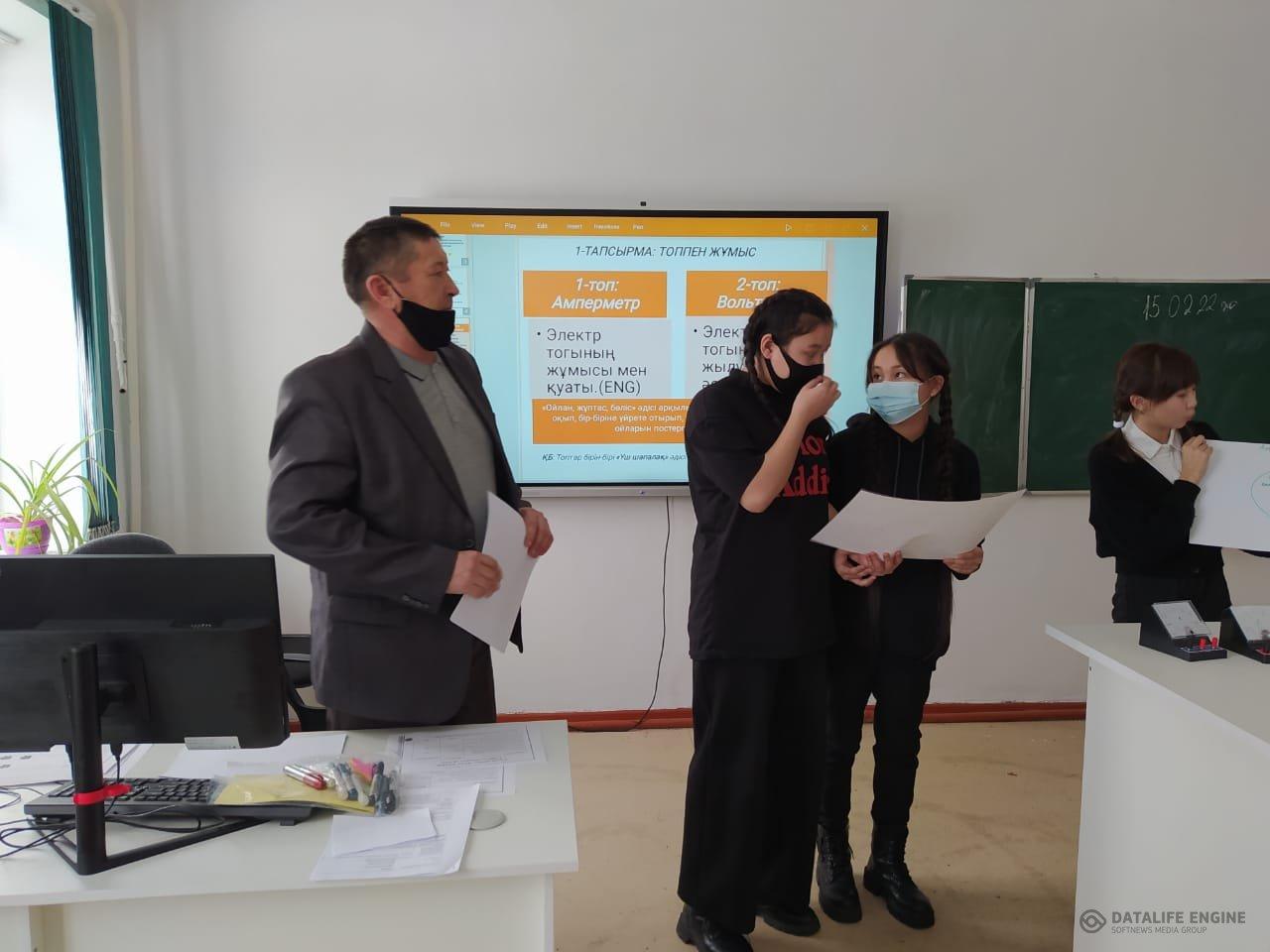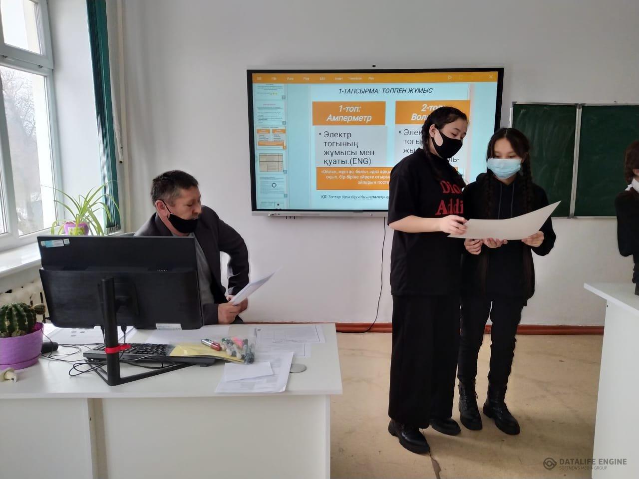 27 January 2022 Онлайн шеберхана Бауыржан Момышұлы атындағы орта мектебінде "Онлайн шеберхана" жобасы аясында Үш тілді білім беру бағыты бойынша физика пәні мұғалімі Керимкулов Курмангали Елтаевич "Electric current" тақырыбында 8 сынып оқушыларына сабақ өткізді.