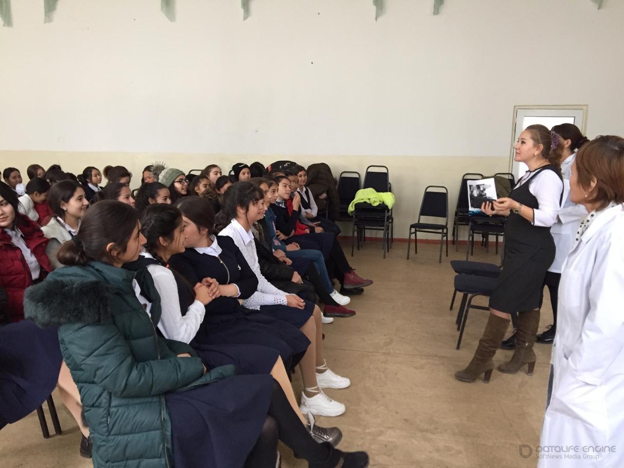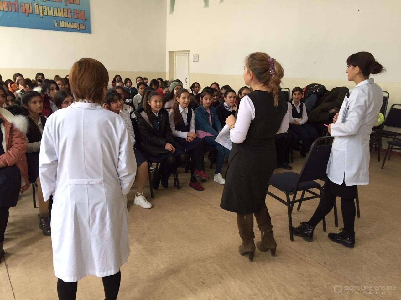 Мектебімізде 2019 ж. 18 қараша күні медициналық қызметкерлер тарапынан және мектеп психологтары "Қыз бала гигиенасы", "Репродуктивті денсаулық" тақырыбында 8-11 сынып оқушы қыздарына әңгіме кеңестер жұмыстары жүргізілді. Мақсаты: Қыз балалардың денесінің дамуы, гигиенасы туралы түсінік беру.