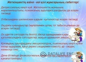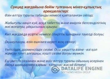Бауыржан Момышұлы атындағы орта мектебінің психологтары У.Ж.Базарбекова мен Г.А.Искакова ата- аналар чатына "Оқушылардың психологиялық- физиологиялық денсаулықтарын сақтау" тақырыбында суицид жағдайына бейім тұлғаның мінез- құлықтық ерекшіліктері, жеткіншектің өзіне- өзі қол жұмсауының себептері туралы кеңестер берді.