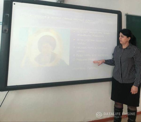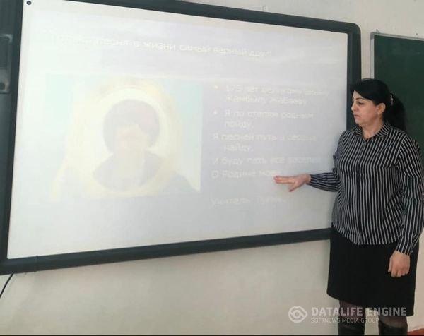 Бауыржан Момышұлы атындағы орта мектебінде педагог ұйымдастырушының ұйымдастыруымен жыр алыбы Жамбыл Жабаевтың 175 жылдық мерейтойына орай " Ұлы даланың жыршысы» тақырыбында