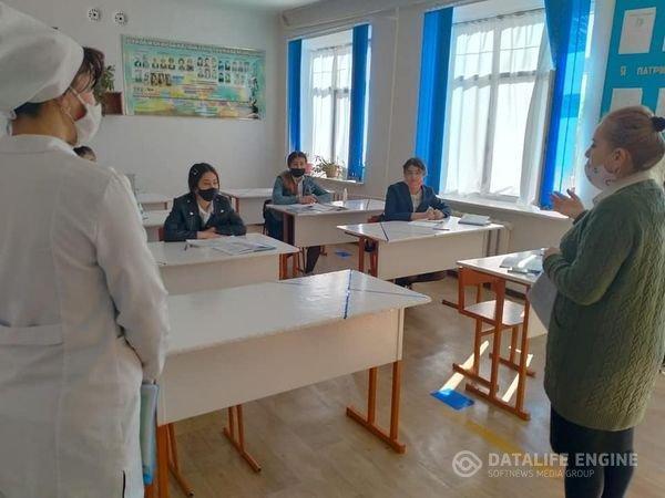 14.10.2020 ж Бауыржан Момышұлы атындағы орта мектебінде мектеп психологі Г.Искакова мен мейірбике