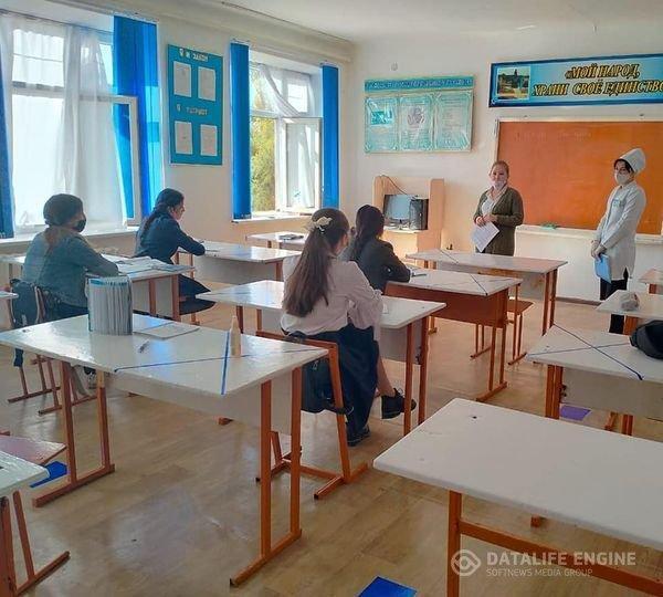 С. Гулиевамен "Қыз ұлттың ұяты, халықтың шырайы" тақырыбында 11 сынып кыздарымен барлық санитарлық нормаларды сақтап, жиналыс өткізілді. Жиналыс барысында қыз баласының бойында қандай қасиеттер болу керек екендігін туралы айтылды және мектеп психологі Г. Искакова, ерте жүктіліктің алдын алу мақсатында әңгіме жүргізіп, қажетті кеңестер берді. Сонымен қатар спортпен айналысуға, гигиеналық шараларды сақтануға шақырды.