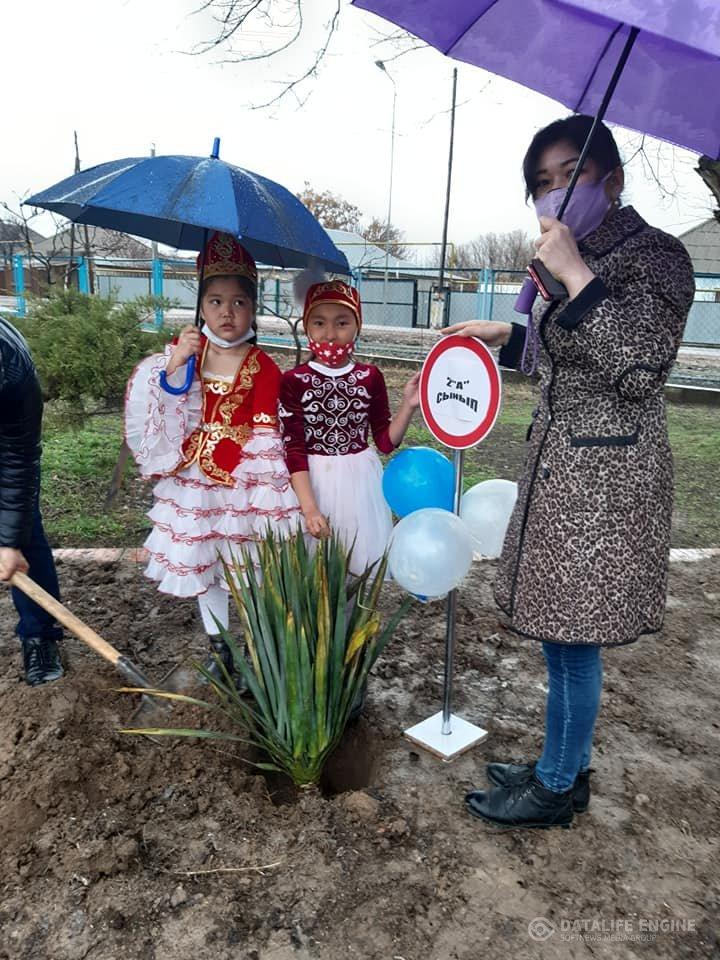 А. Игенбекова ат салысып, оқушылармен бірге ағаштар екті.