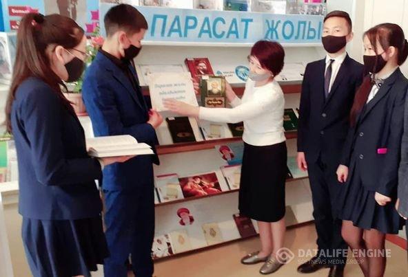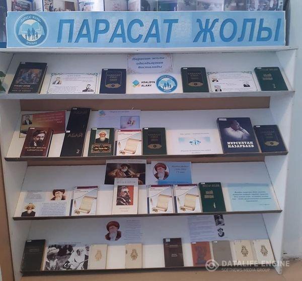 " Парасат жолы" жобасына арналған бұрышты  Бауыржан Момышұлы атындағы орта мектебінің кітапхана меңгерушісі