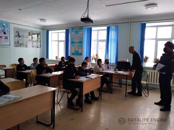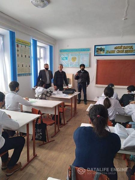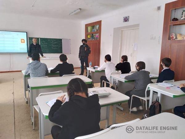 Бауыржан Момышұлы атындағы орта мектебінде "Психологиялық кеңес беру айлығы" аясында оқушылардың құқықтық сауаттылығын арттыруда және құқық бұзушылыққа жол бермеу мақсатында мектептің ҚТІЖО В Б.Мирзаев, учаскелік полиция инспекторы Р.К.Гасанов "Жасөспірім және заң" тақырыбында кездесу өткізді.