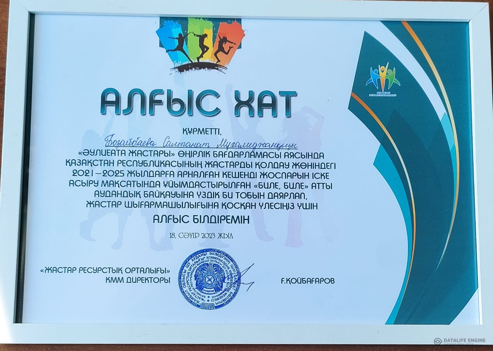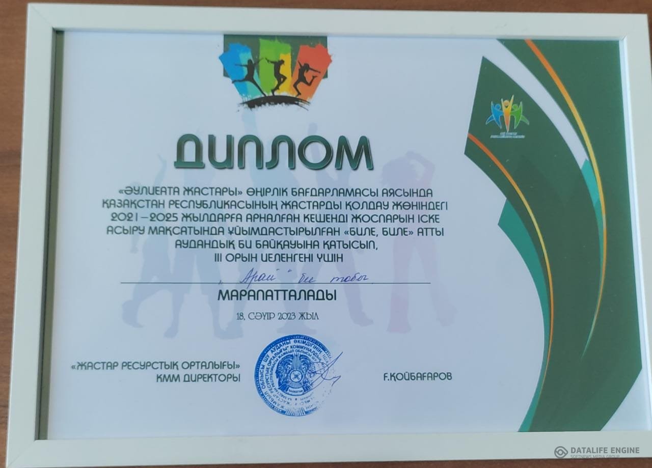 " Арай" тобы жүлделі ІІІ орын иеленді. Жетекшісі Бозайбаева Салтанат