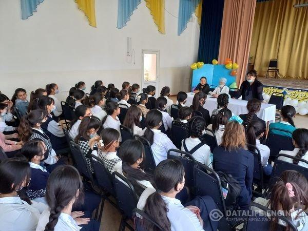 Бауыржан Момышұлы атындағы орта мектебінде 25.02.2022ж. "Ерте жүктілік және оның жауапкершілігі мен зиянды жақтары" тақырыбында мектеп психологтары У.Ж.Базарбекова, Ф.Б.Рустамова әлеуметтік педагог К.Ж.Шокаева, медбике М.Сейтова, "ҚЫЗ ЖІБЕК" клубының жетекшісі А.К.Тажиева бірлесе отырып қыздар жиналысын өткізді. Мақсаты:қазақ халқының әдет-ғұрып, салт- дәстүрлерін қыз балалардың бойына сіңіре отырып, қыз балаға келешекте қоғамның, жауапкершіліктің тұрғандығын сезіндіре отырып, әдепті, сыпайы, адамгершілігі мол, жан-жақты жетілген қыз бала тәрбиелеу.