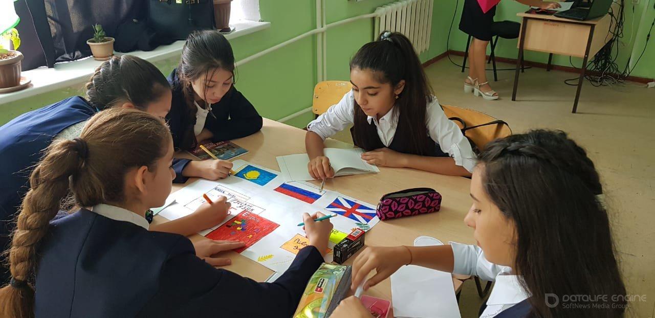 06 сентябрь 2019 0 1 2 3 4 5 Қазақстан халқы тілдер күні "Қазақстан халықтары тілдері" мерекесіне орай өткізілген іс-шаралар. Соның ішінде "Үш тұғырлы тіл" атты полиглоттар сайыс сабағы. Жетекшілері: Тажиева А.К. және Касымова Р.Л.