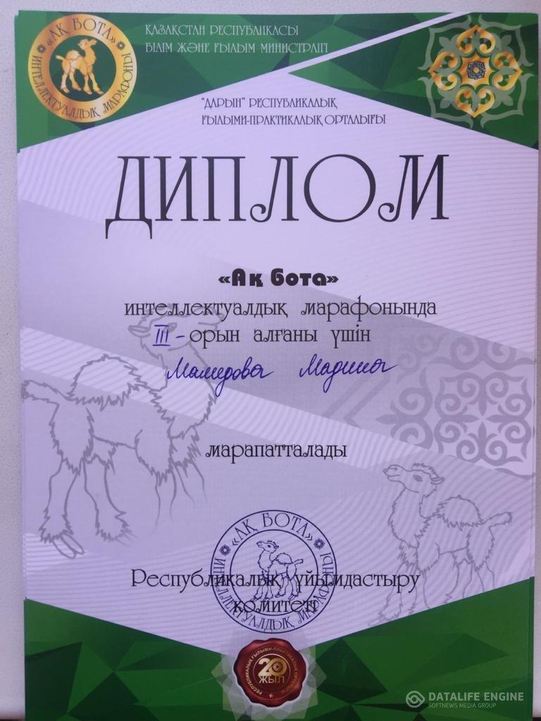 12 май 2020 0 1 2 3 4 5 "Ақ бота" интеллектуалдық марафоны. Бауыржан Момышұлы атындағы орта мектебінің оқушылары "Ақ бота" интеллектуалды марафонына қатысып І,ІІ және ІІІ орын Дипломдарын иеленді.