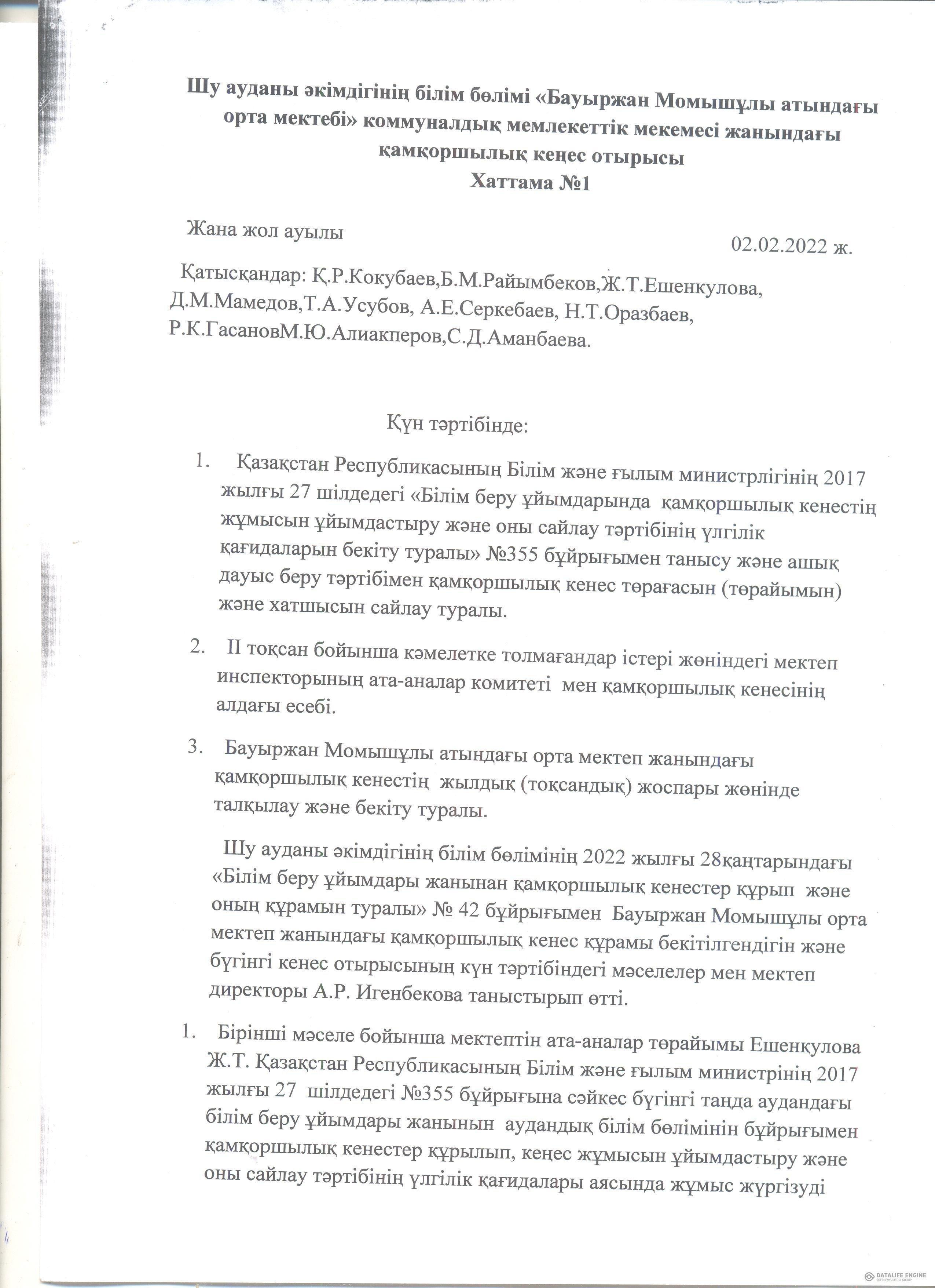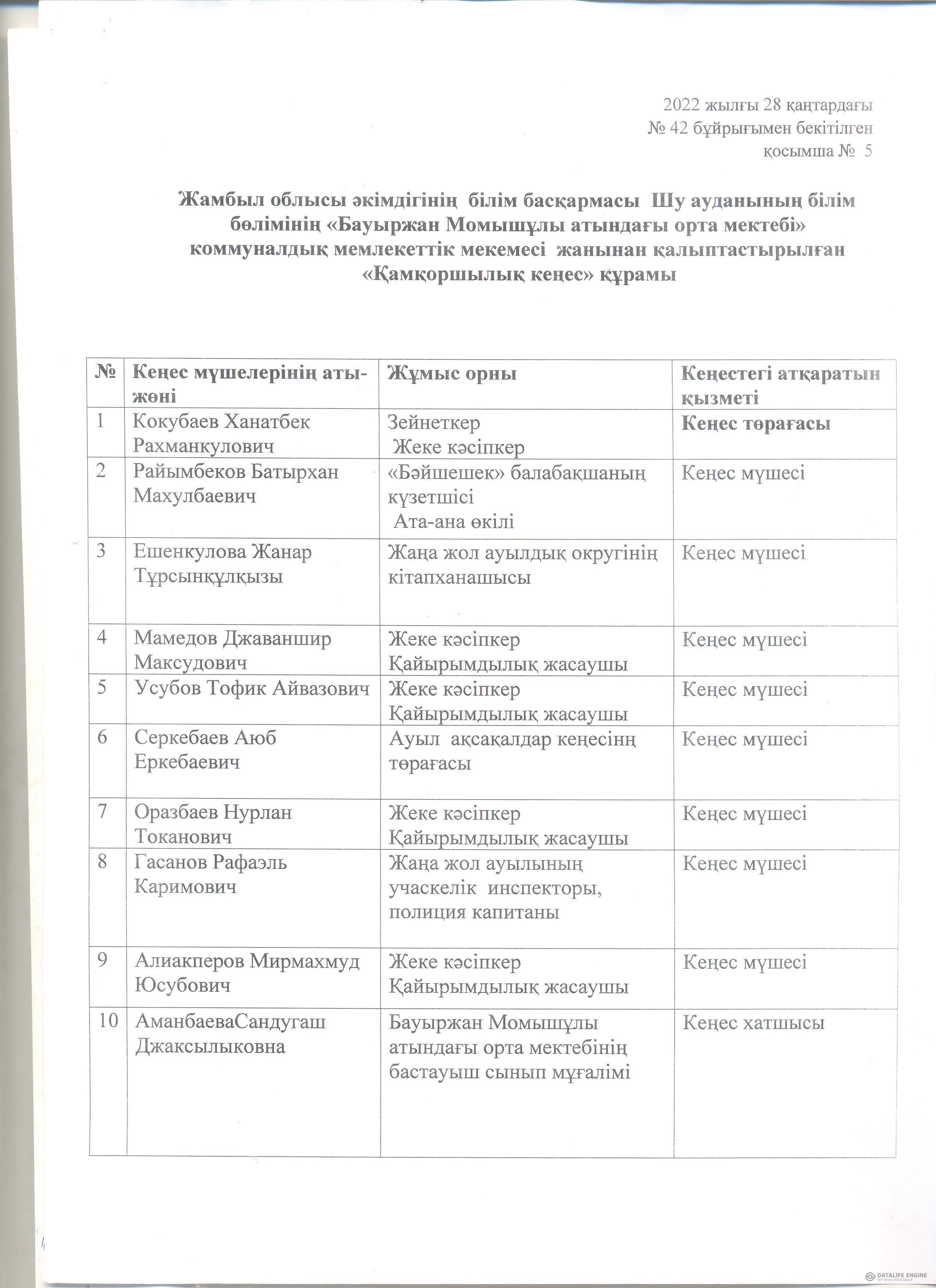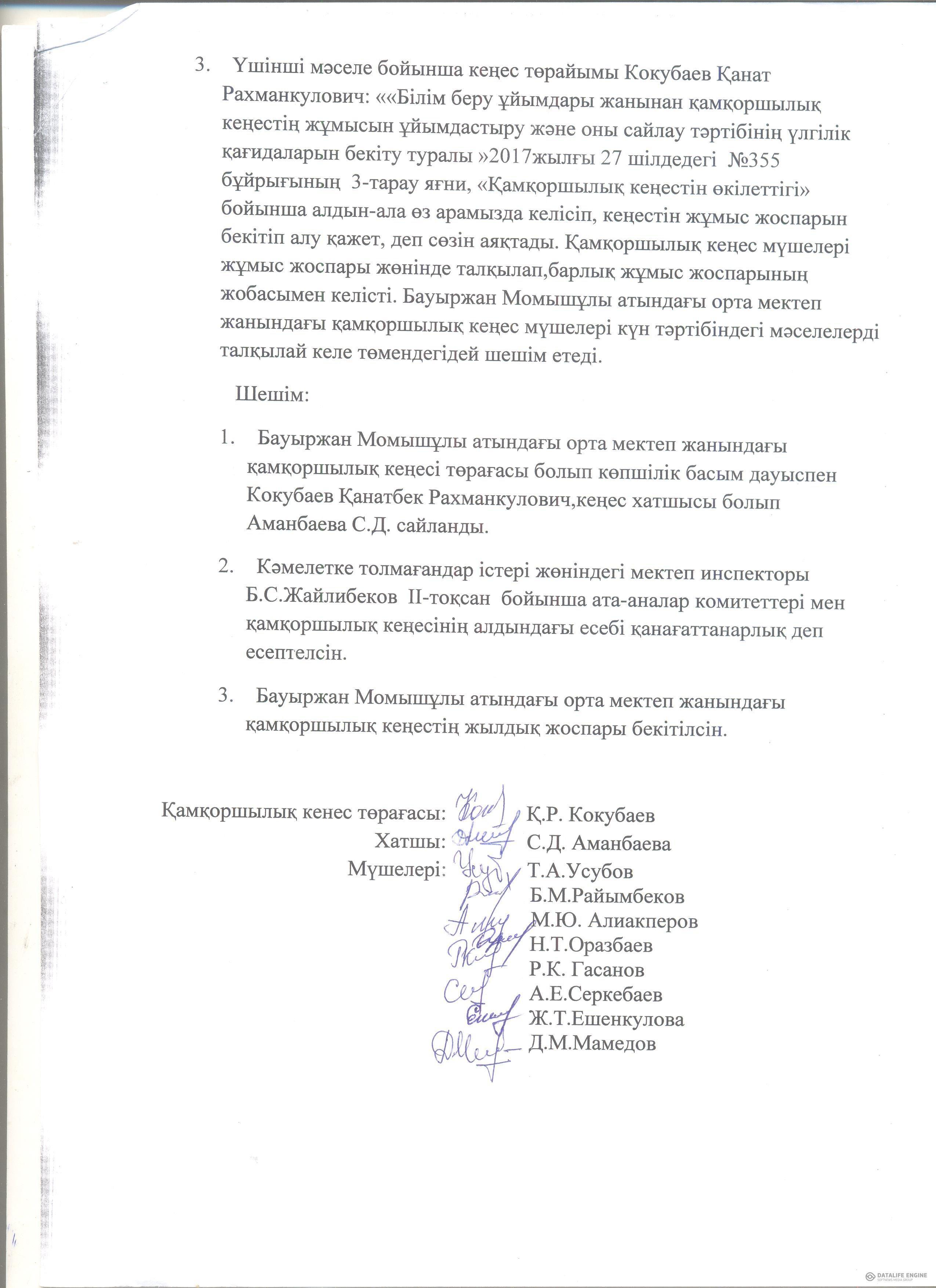 Попечительский советі » Б.Момышұлы атындағы орта мектебі