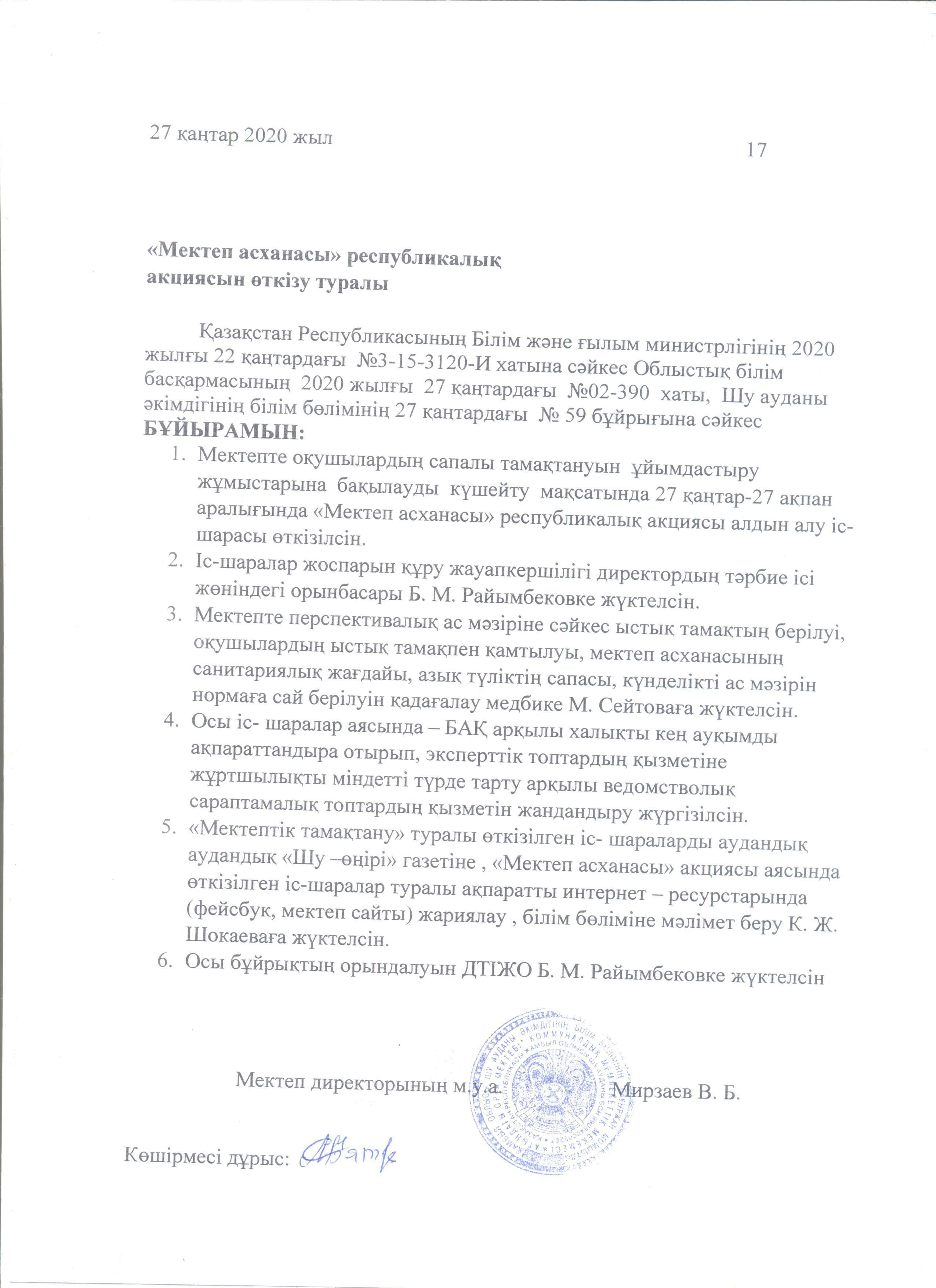 "Мектеп асханасы" республикалық акция » Б.Момышұлы атындағы орта мектебі
